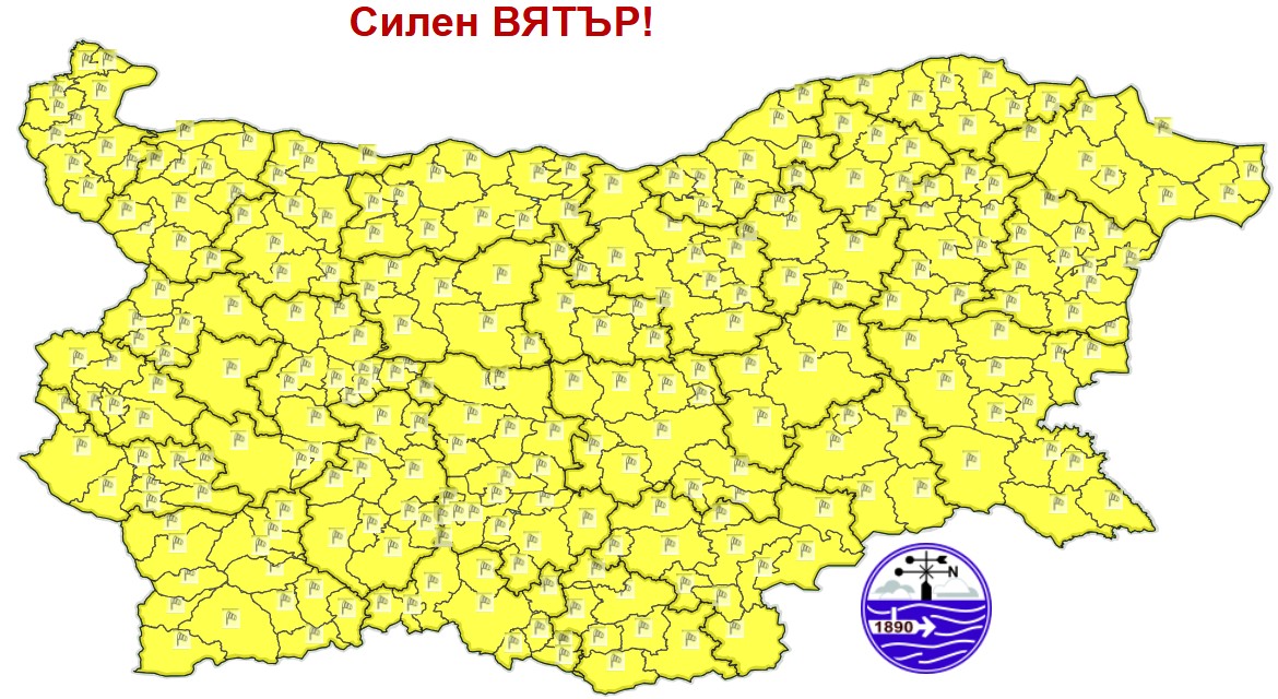 Времето: Жълт код за силен вятър е обявен в цялата страна