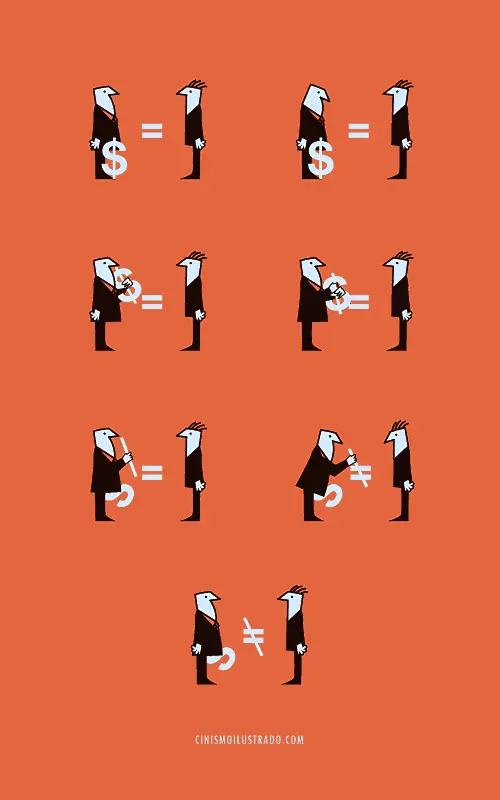 Илюстрациите му са абсолютно брилянтни – определението не е пресилено. И не само, че са такива от гледна точка на идеите им, но и чисто дизайнерски са чудесно изработени. Напълно изчистени са от излишни детайли, с по няколко изписани върху тях думи. Същевременно имат огромна дълбочина на посланията и се разбират от всеки.